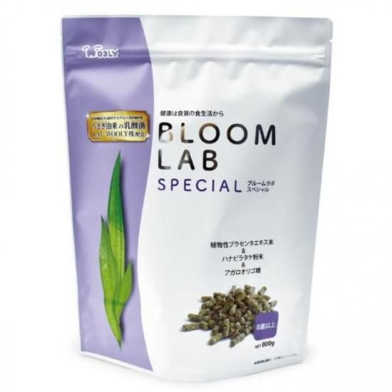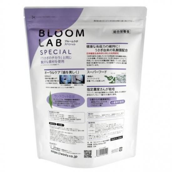 高齢の入口としてのケアを考え、『植物プラセンタ』および『アガロオリゴ糖』に加えて、同じく機能食材の『ハナビラタケ』を配合した『ブルームラボ スペシャル』。『ブルームラボ シニア』よりもさらに嗜好性を高め食べやすく仕上げており、味へのこだわりが強くなる年齢でも、毎日しっかりした食事を摂れるよう配慮しています。 ・年齢や成長に応じた4タイプの栄養バランスが、うさぎの健康的な日々を補助します。 また、日本獣医生命科学大学との共同研究によって生まれた『うさぎ由来の乳酸菌』を 配合し、健康食品としての最高峰であると誇れる高機能総合栄養食が誕生しました。 <特徴> ・傷みにくい小分けタイプ(400g×2袋)。 ・スーパーフード配合で優れた栄養バランスと高い免疫力の獲得をサポート。 ・咀嚼回数を増やし、臼歯のメンテ回数を低減。 ・適度な硬さとほぐれやすさで、歯根に負担をかけない。 ・粗めの繊維質を大量に配合し、大きくしっかりした便づくりへ。 ・素材の粘性を抑え、口内を清潔に保ちオーラルケアに最適。